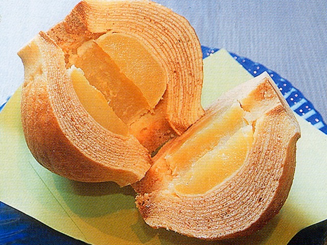 創業100年を超える老舗菓子店。初代は歌舞伎役者で、屋号はその名残からきている。1番人気は『アップルクーヘン』。球形のバウムクーヘンの中に、まるごと1個のりんごが入っている逸品。